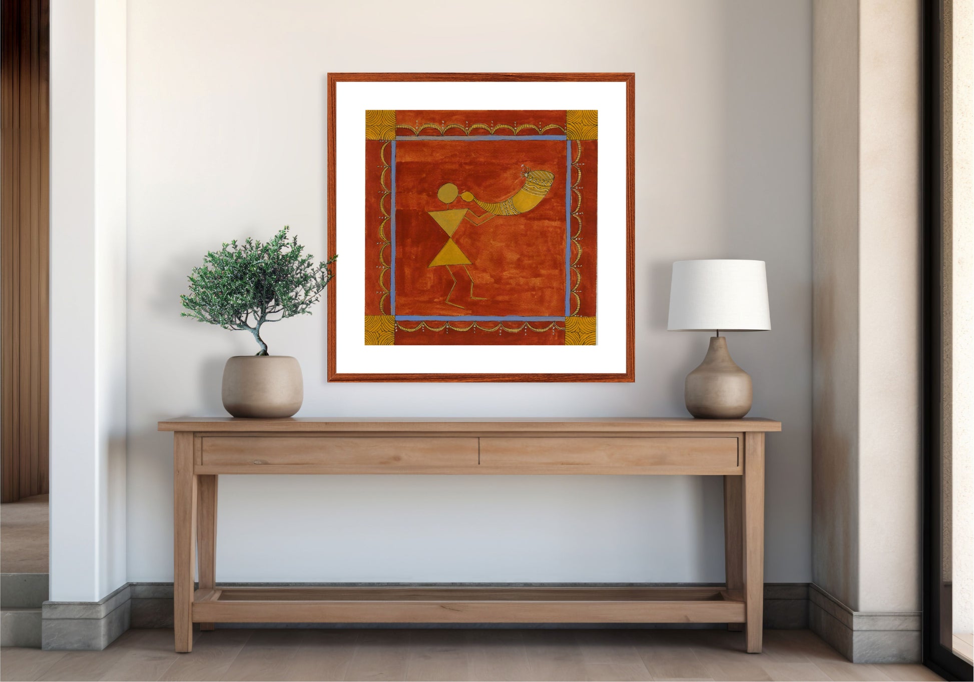 Authentic ethnic Warli folk wall art print V on museum-quality paper. Traditional Indian tribal art with intricate details is perfect for home decor!