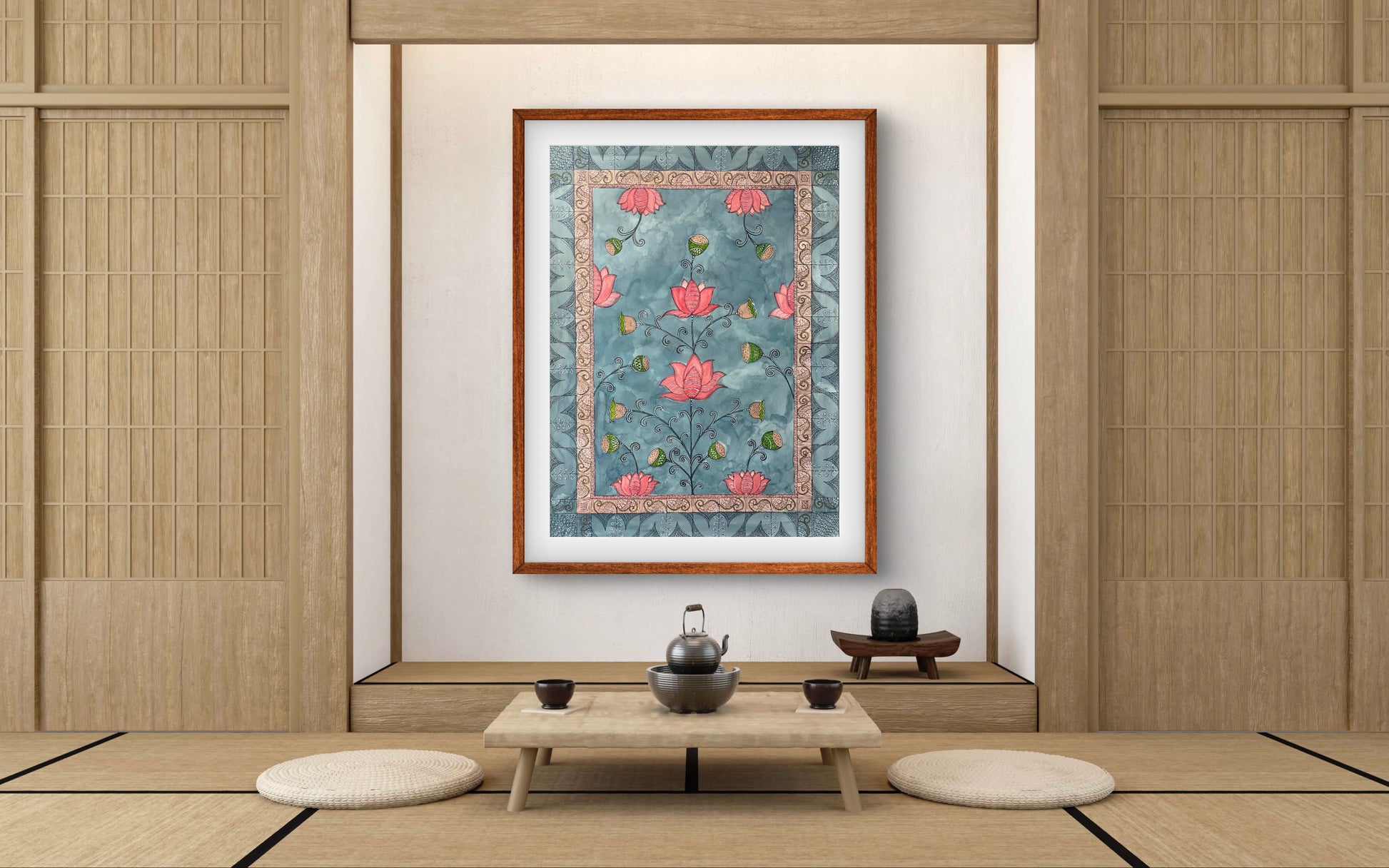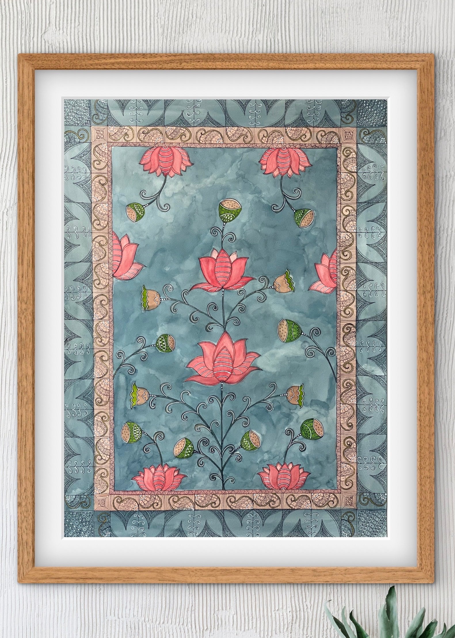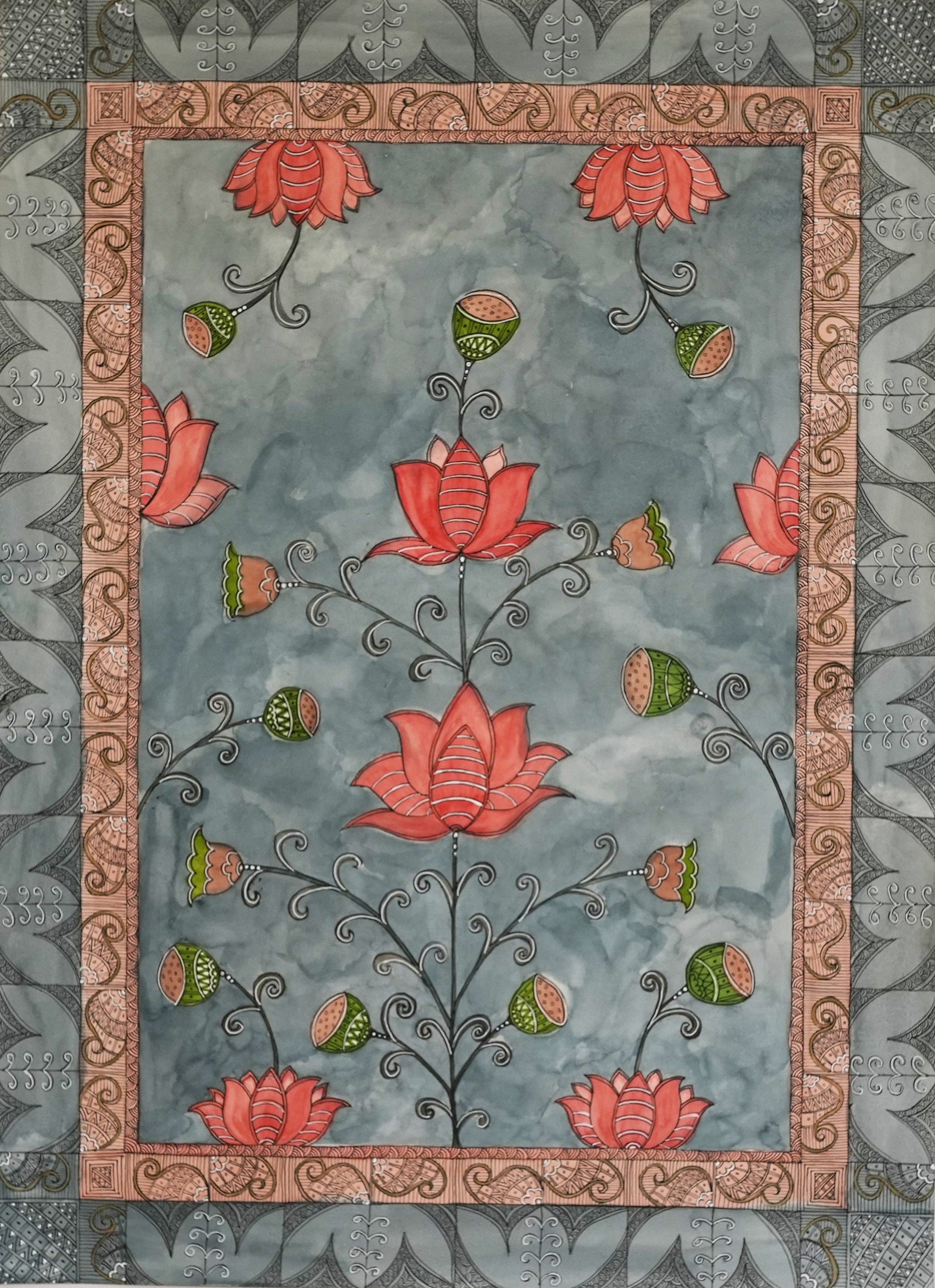 "Madhubani Floral Artwork - Traditional Indian Folk Art Print | ZenS Art"