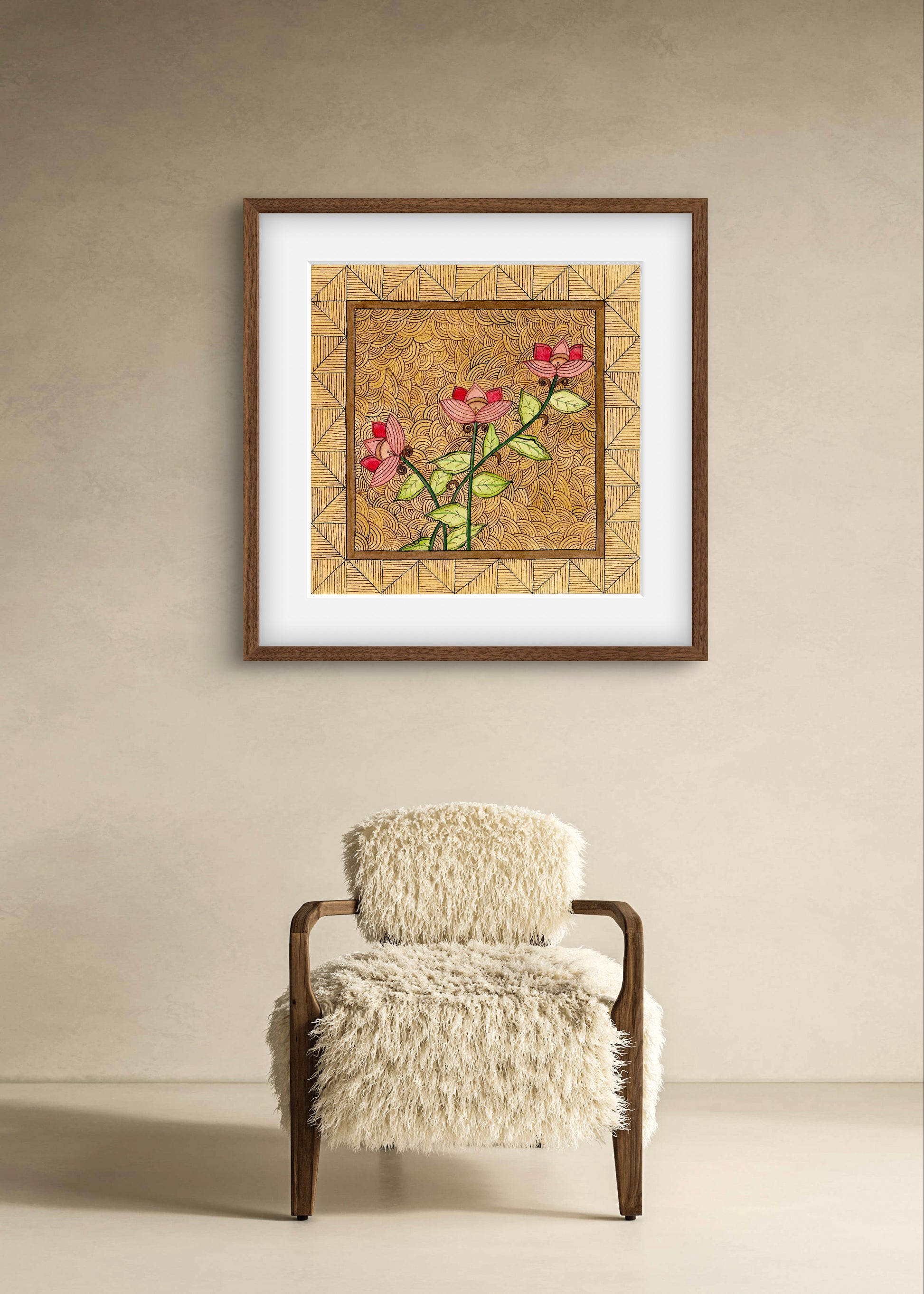 "Madhubani motif artwork featuring traditional Indian folk patterns. Museum-quality fine art print with vibrant cultural designs. Perfect wall art decor."