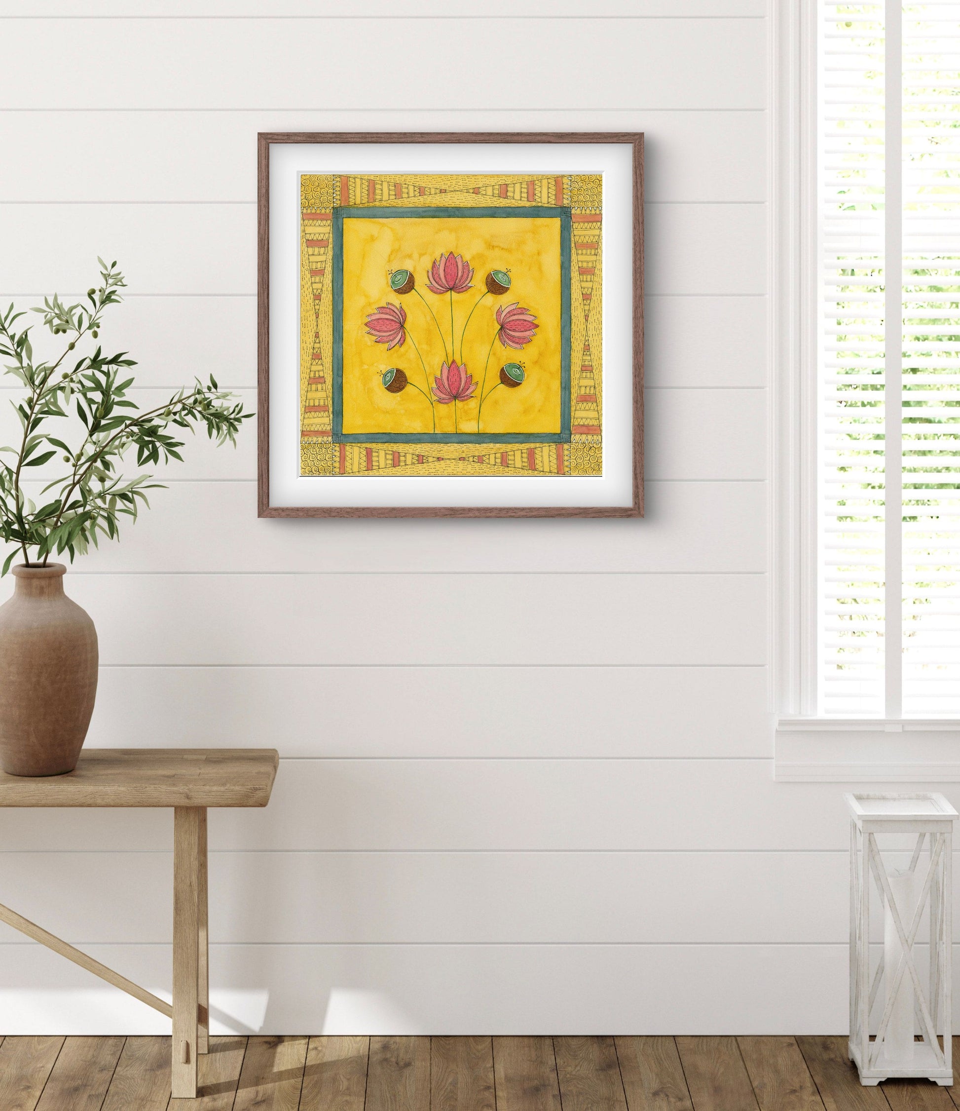 "Madhubani Motif Artwork - Vintage Indian Folk Art Print II | ZenS Art"