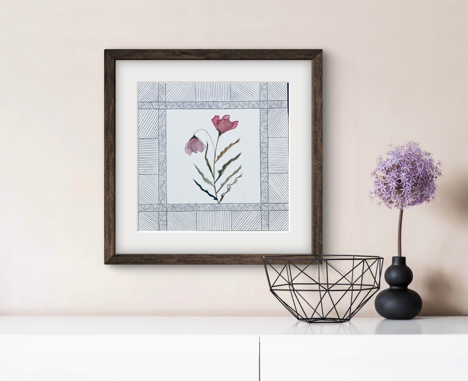 Modern Abstract Floral Geometric Art - Contemporary Home Decor | ZenS Art