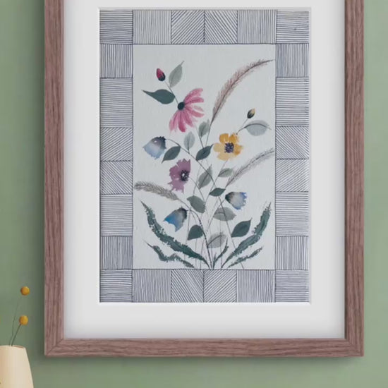 "Stunning modern geometric floral art with abstract design and decorative borders. Contemporary wall art print perfect for stylish home interiors."